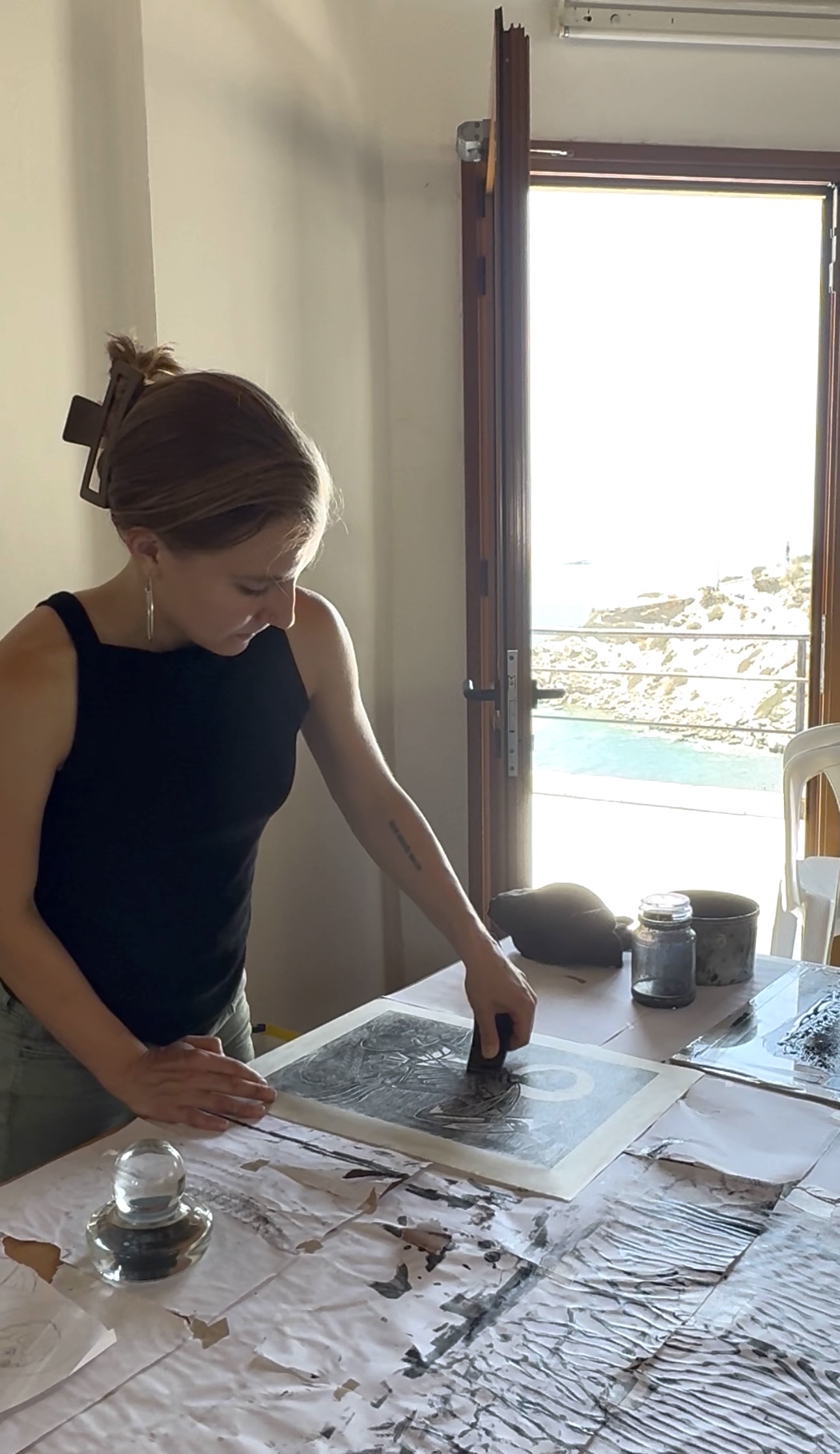 Participants in the woodcut workshop are fully part of the Summer School community.
